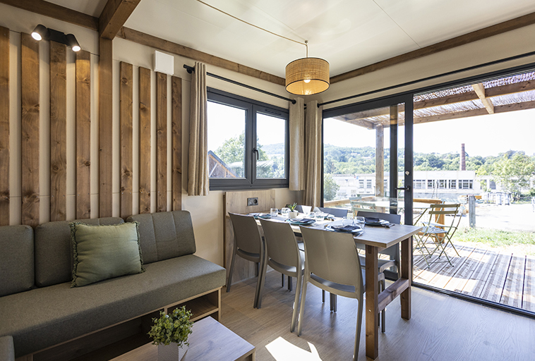 Basisuitvoering stacaravan Moderne stacaravan voor maximaal 4+1 personen met een keuken en buitenterras