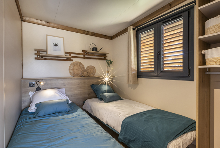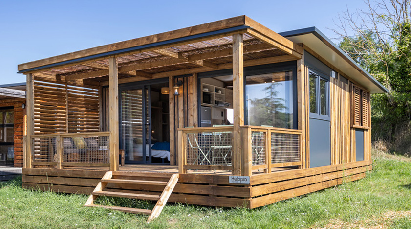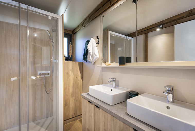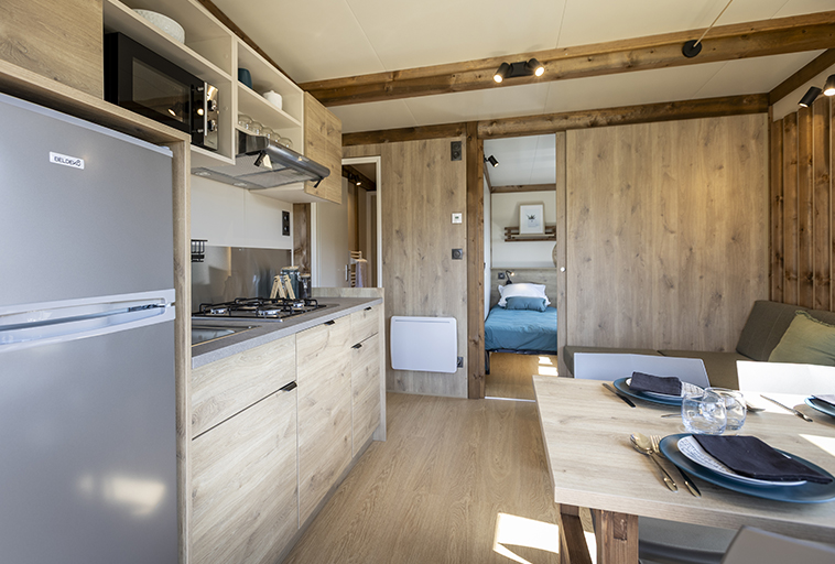 Basisuitvoering stacaravan Moderne stacaravan voor maximaal 4+1 personen met een keuken en buitenterras